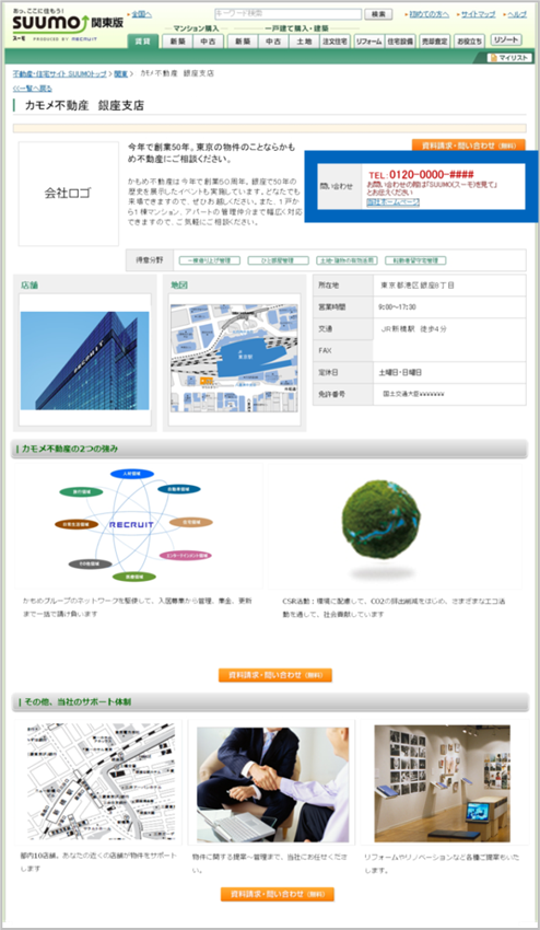 「貸す特集」には、貴社ホームページへのリンク機能がついています。これにより、SUUMO特集ページから直接、貴社のHPへ誘導し、物件募集や管理提案につながる流入を促進します。また、オーナーにとっては「信頼できる会社を選ぶ」ためにHPも重要な判断材料となるため、HP上でも実績や強みを分かりやすく打ち出すことで、反響効果を最大化できます。