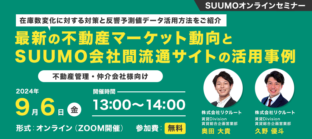 ※物件情報は「SUUMO入稿システム」にご登録の情報が連動されるため「SUUMO入稿システム」へのご登録、および物件枠の購入が必要となる場合があります。料金体系、金額については今後変更になる可能性がございますのでご了承ください。オプションにより別途費用が発生する場合があります
