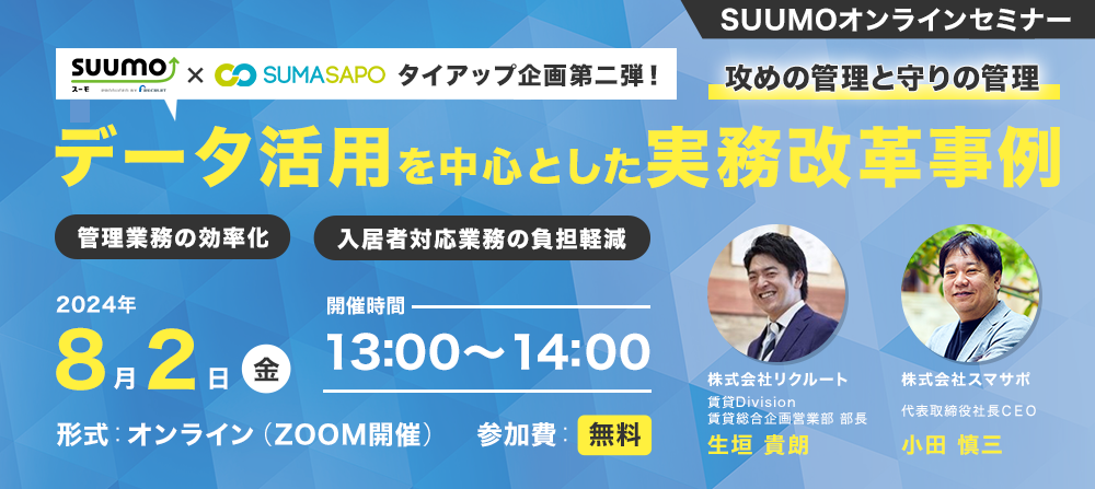SUUMOの提供するオンライン申し込みシステムです。申込サポートの効果を実感いただくために、初期費用および月額費用を無料で提供させていただきます。